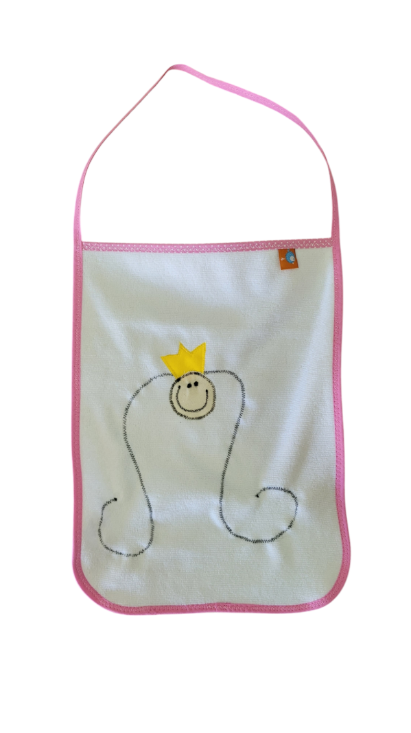 Diseño exclusivo GL ®️ pensado especialmente para que los peques no la pierdan. Confeccionada en tela toalla, detalles de Bies a contratono y bordado artesanal exclusivo